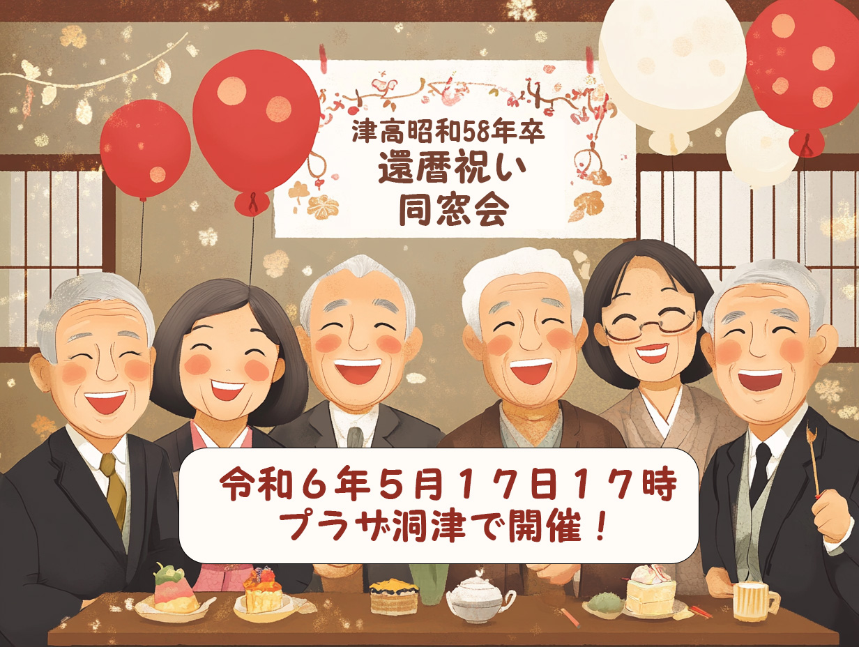 日時:令和7年(2025年)5月17日(土)17時~20時(予定)会費:8,000円場所:プラザ洞津